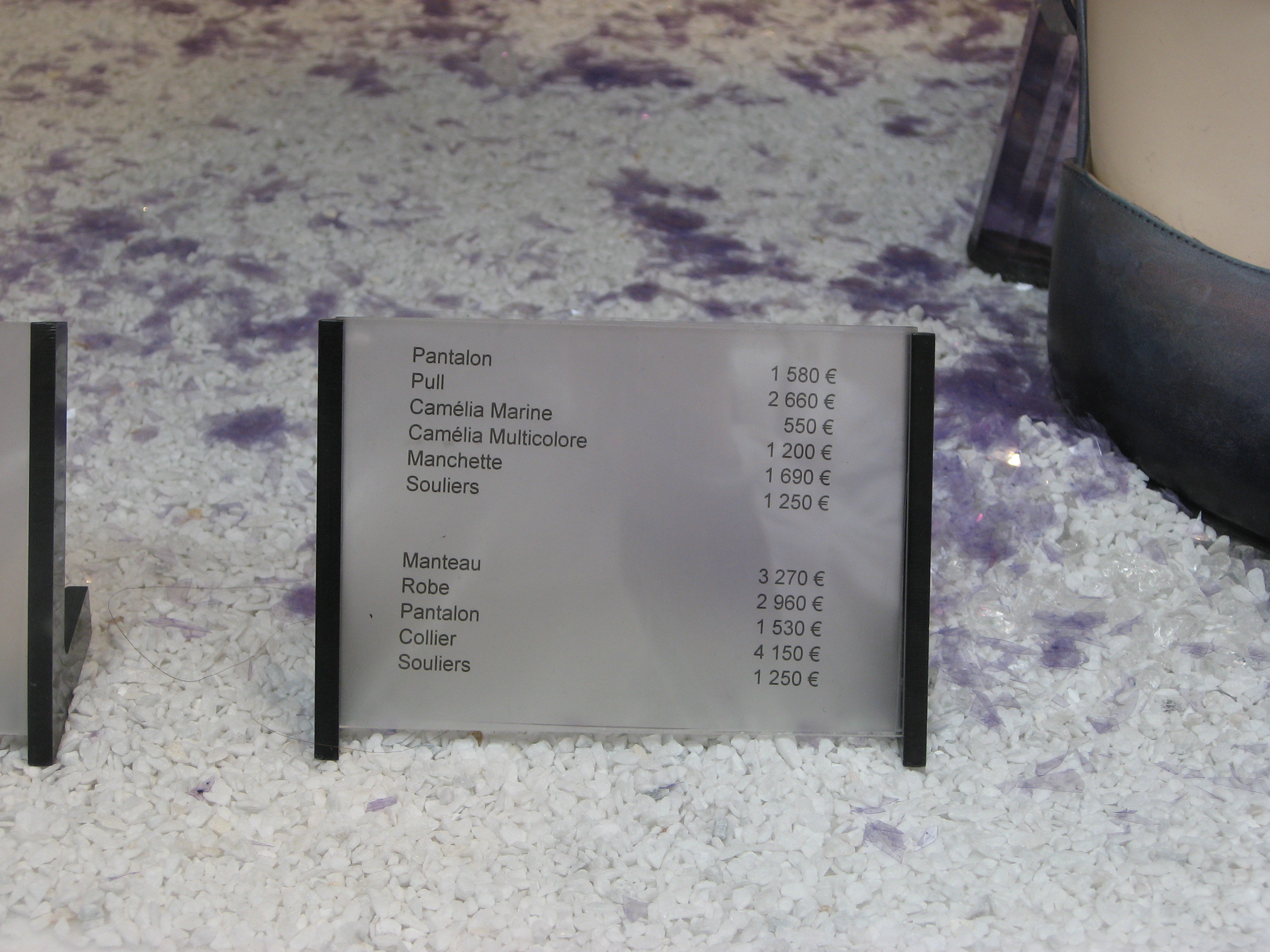 Цены в витринах бутика